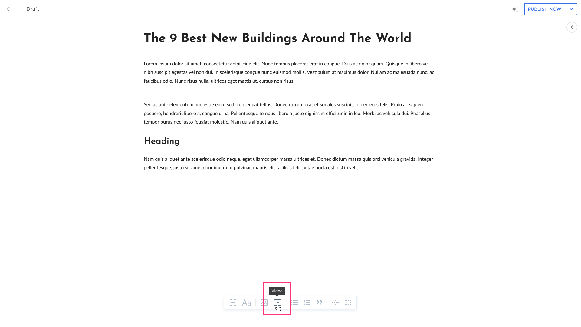 - Add a video by selecting the Video button on the toolbar:
