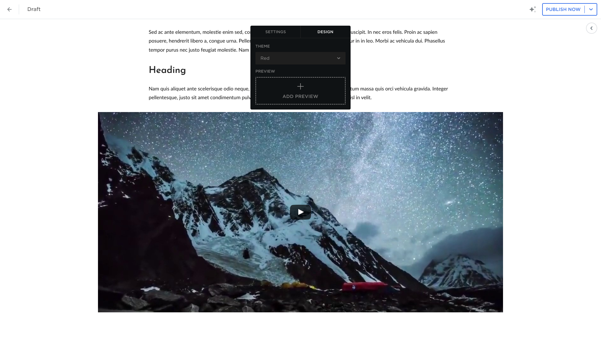 - Use the Design tab to choose the color of the progress bar and video preview image.