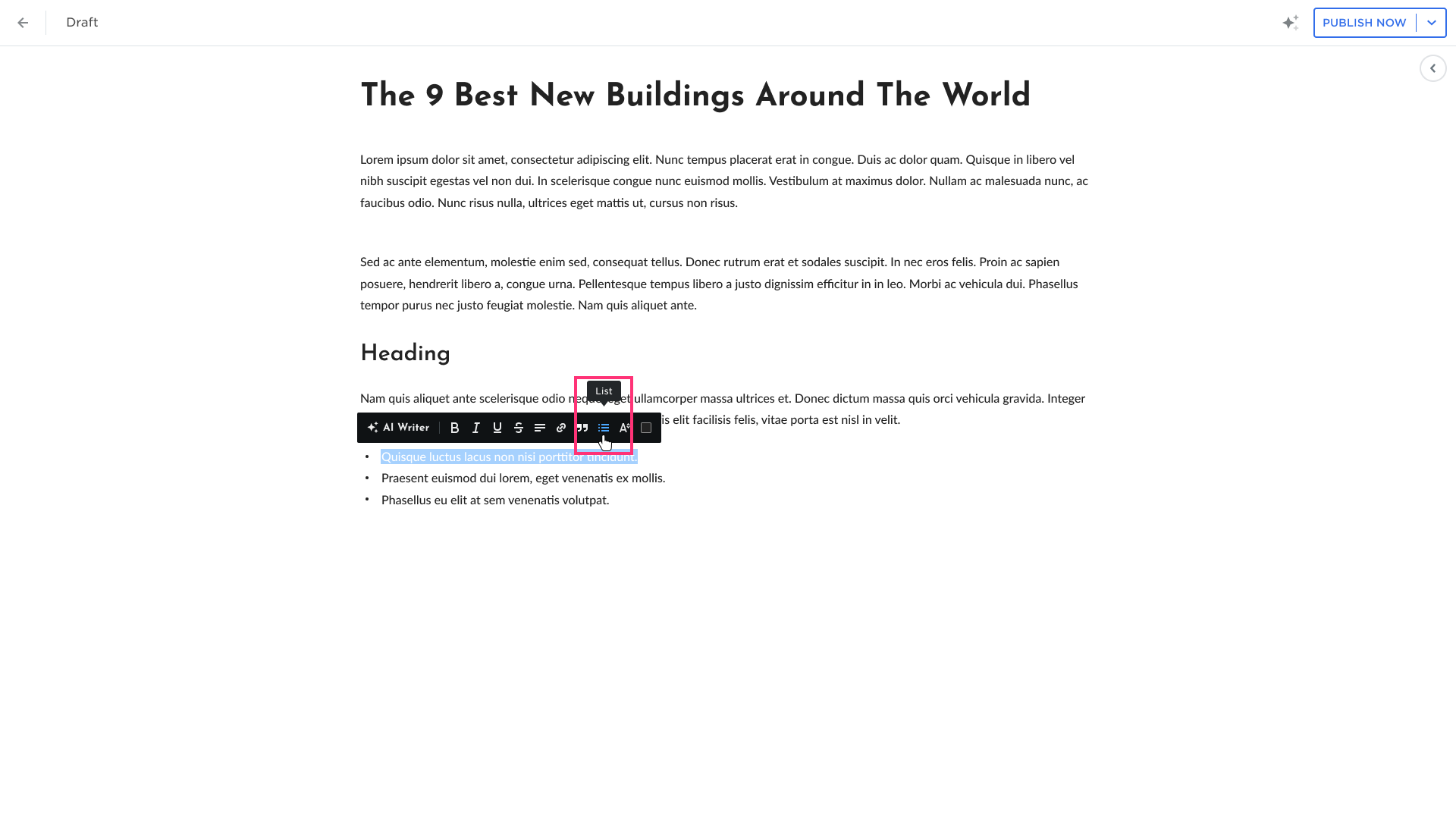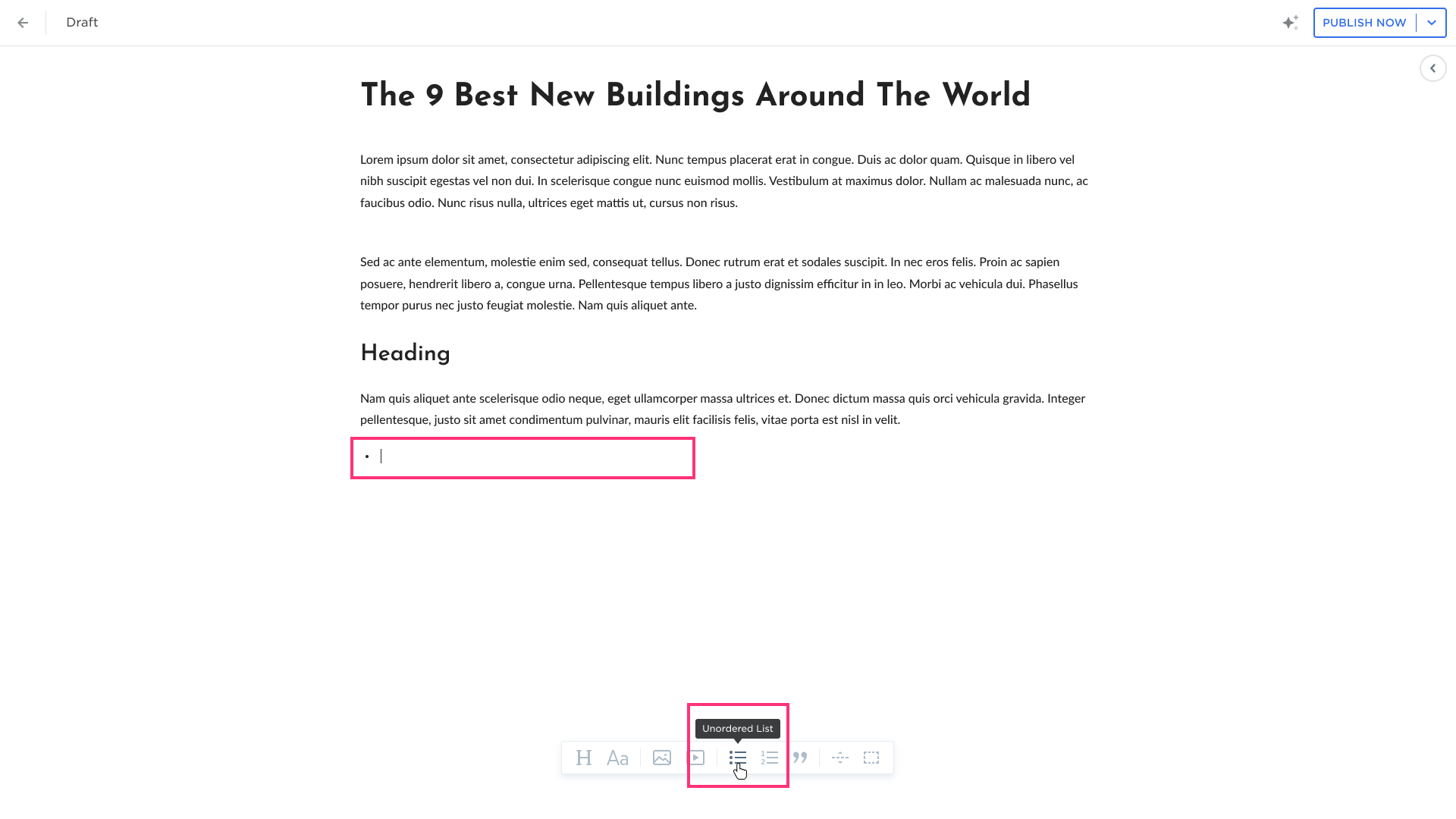 - Add the Unordered List or Ordered List to your text: