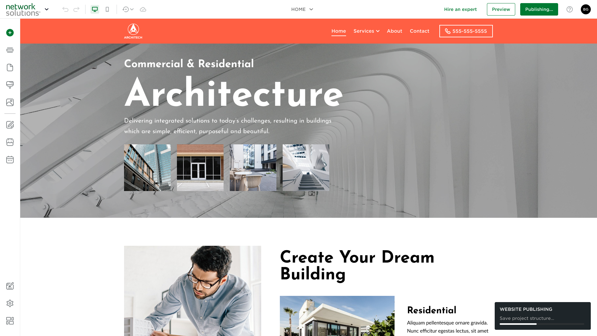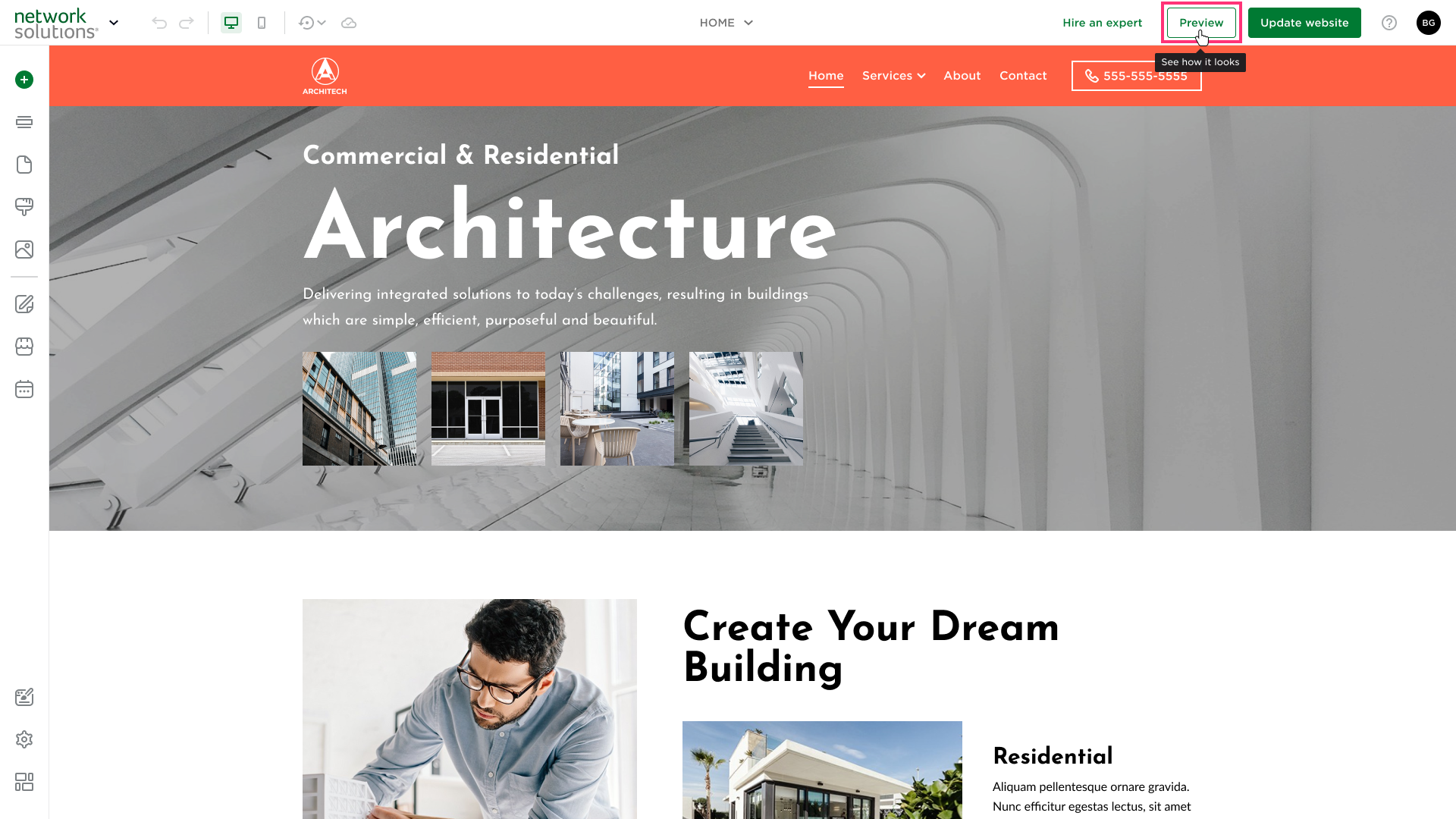 - Click Preview in the top-right corner of the screen to see how your website will appear to visitors: