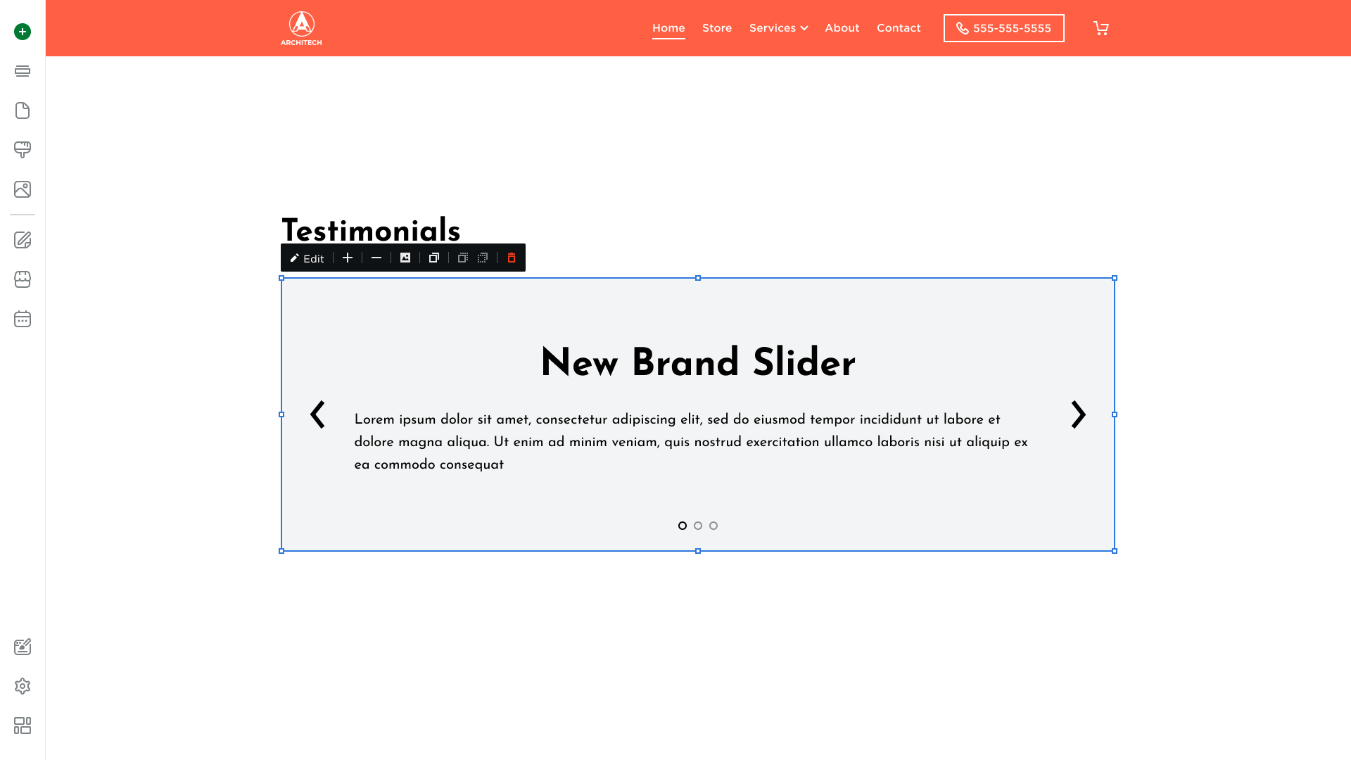 Click the Slider, and click the Edit button to modify its Settings and Navigation: