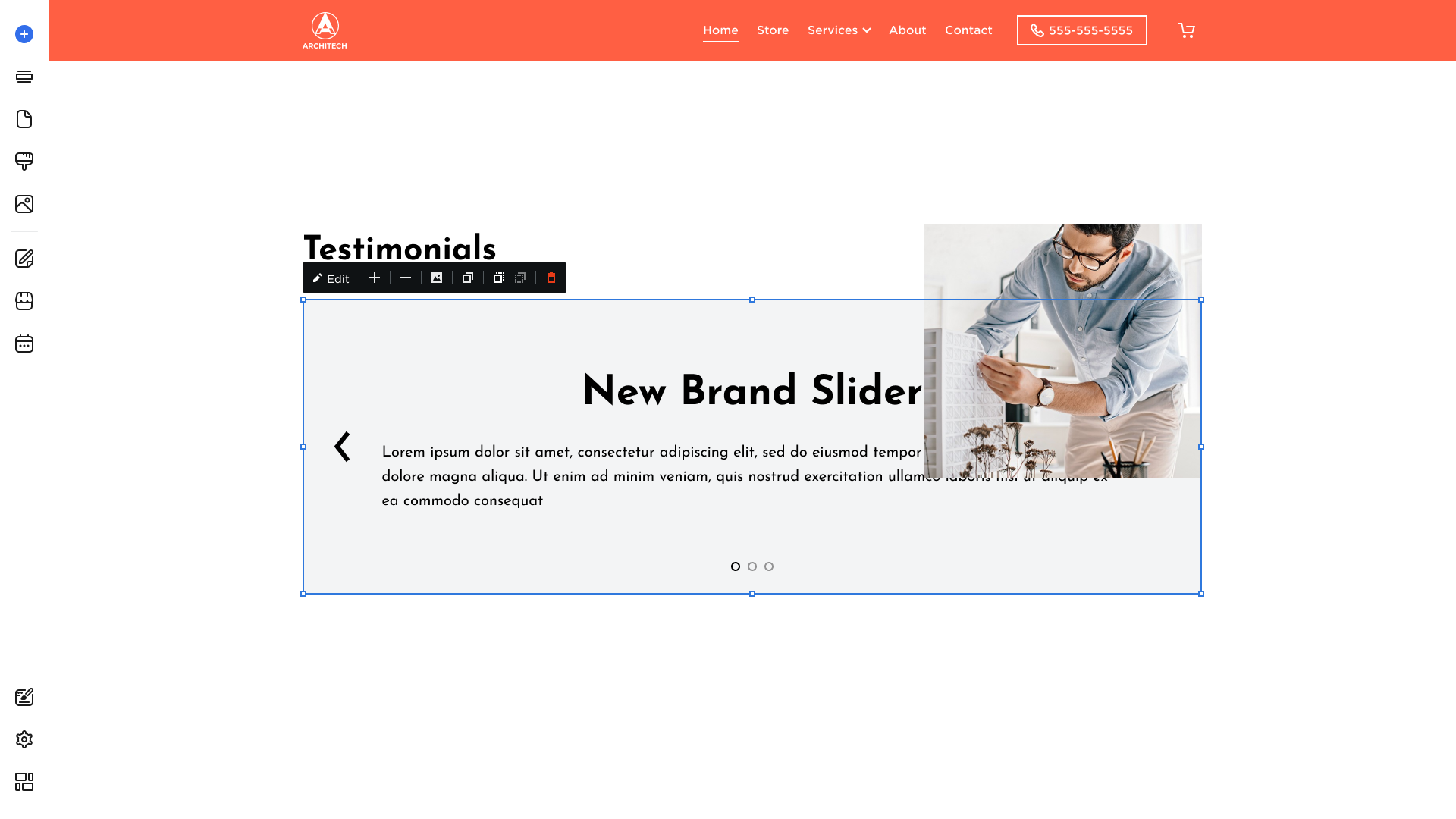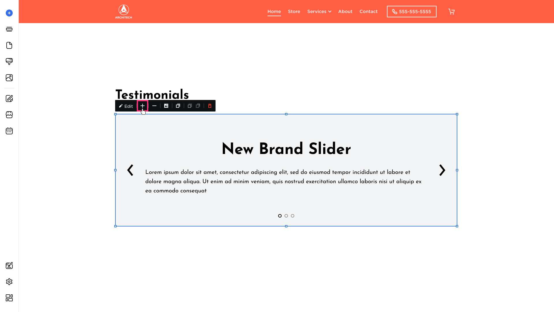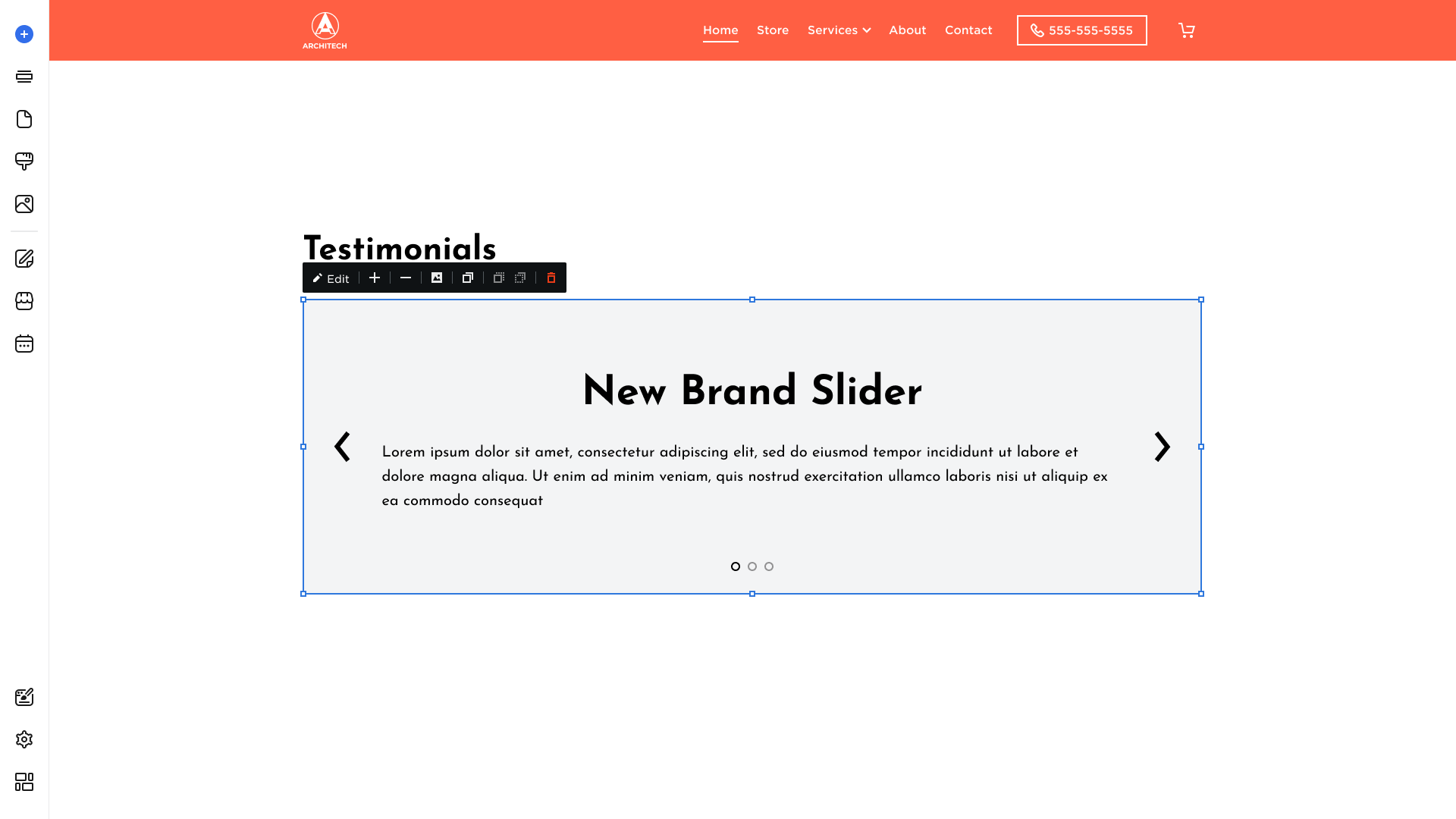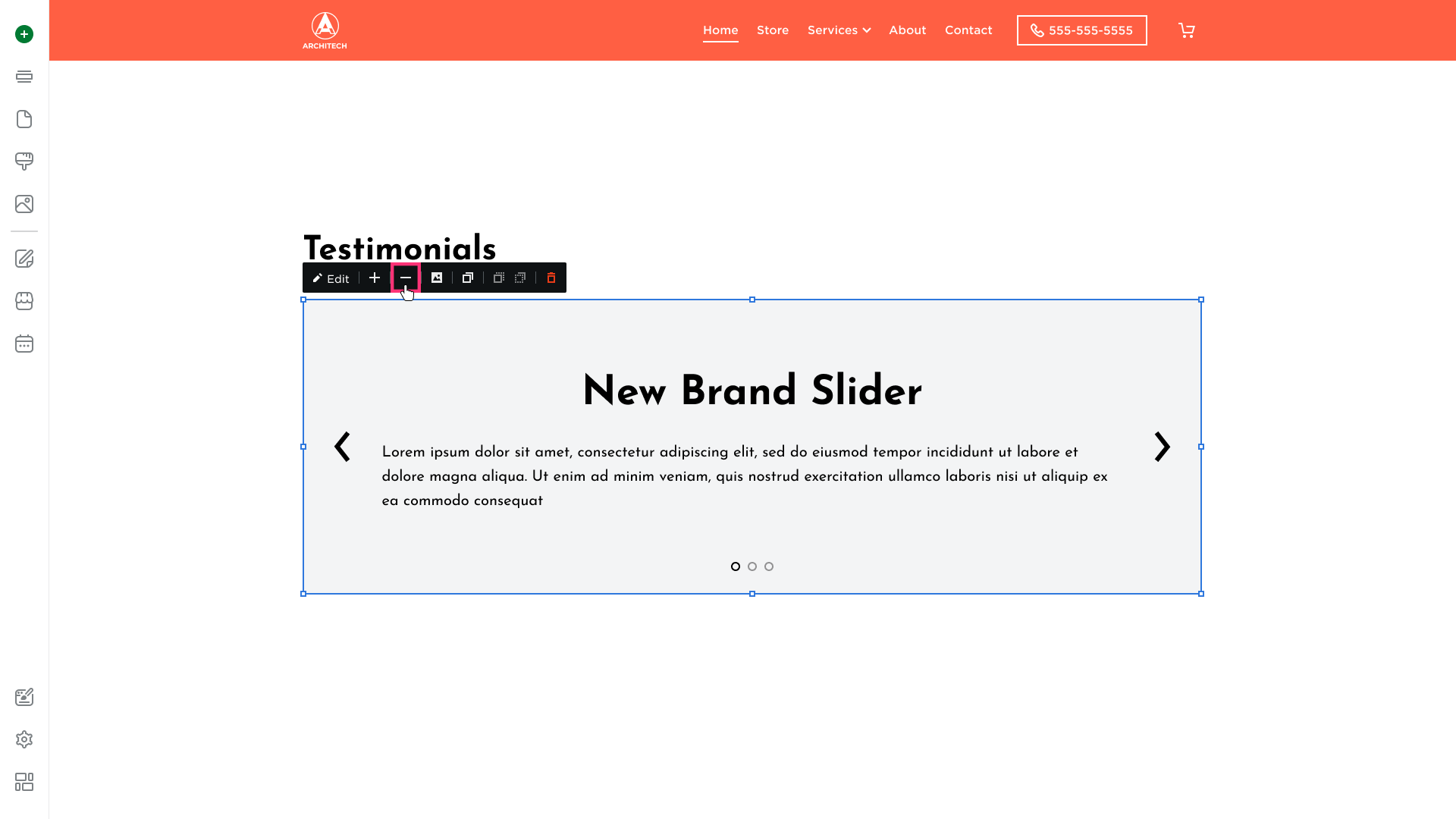 - To delete the slider, click on the element and choose the Remove button [Bin] that appears in its toolbar: