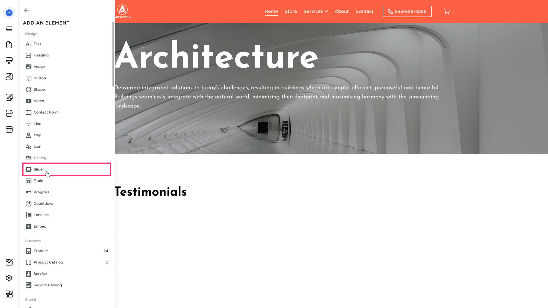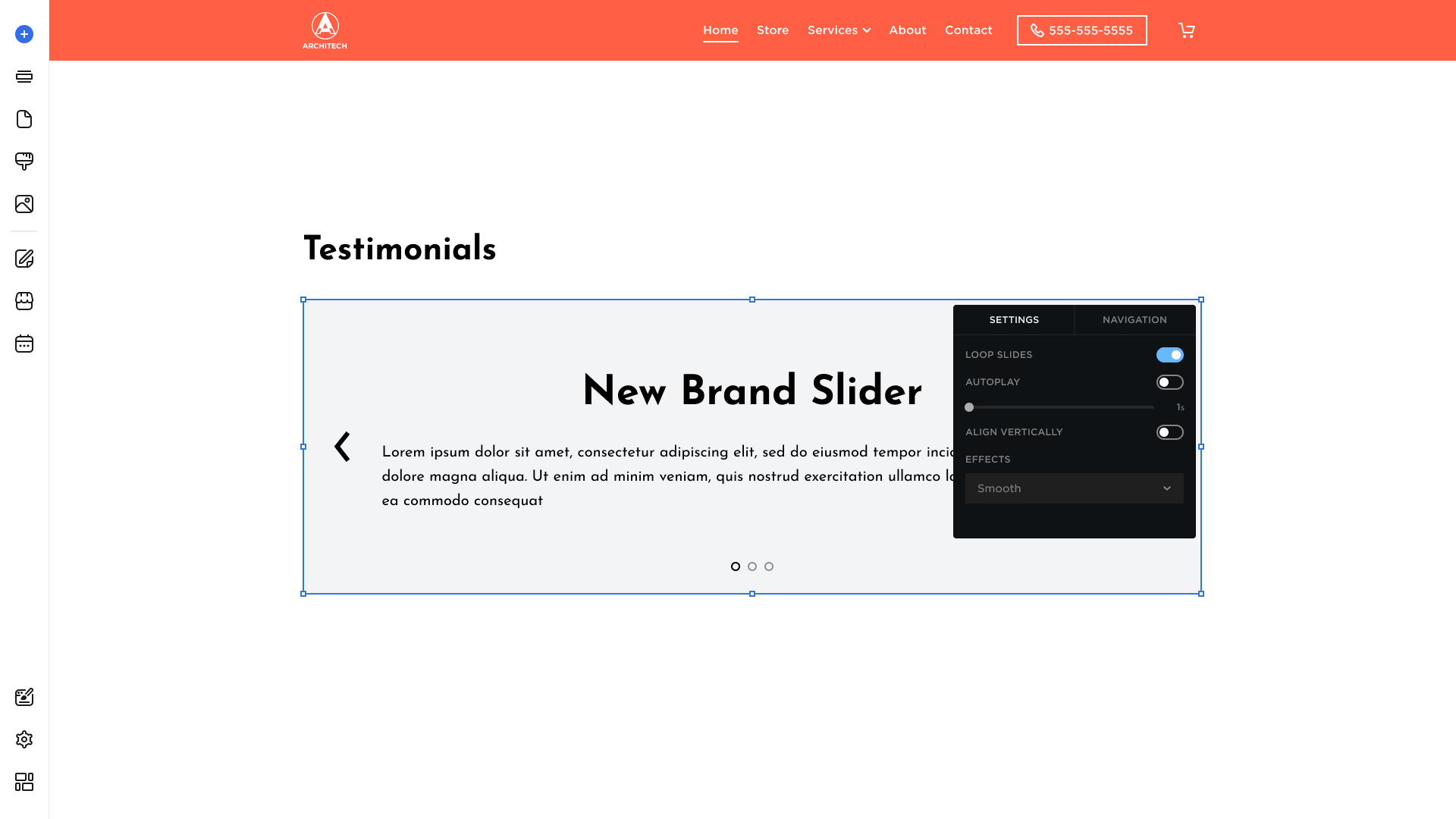 - Align Vertically: Select the Align Vertically control to place the elements into the center of the slider.