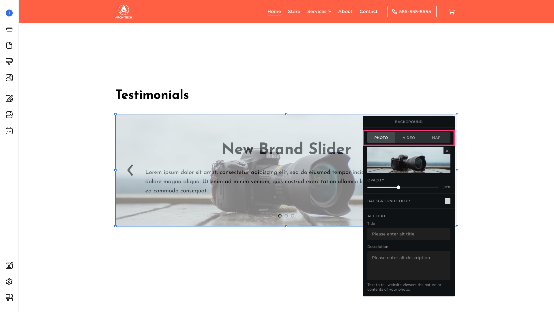 - Click the Background button on the toolbar to set up the background of your Slider.
