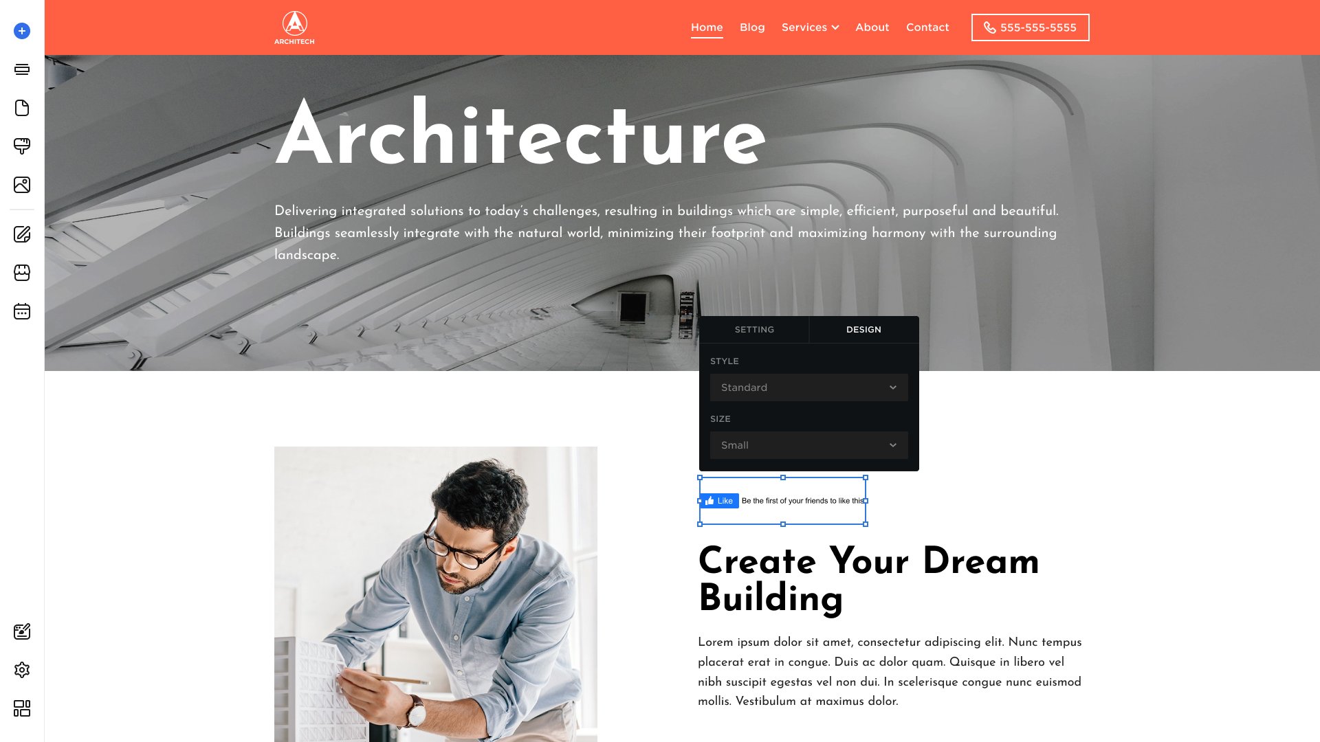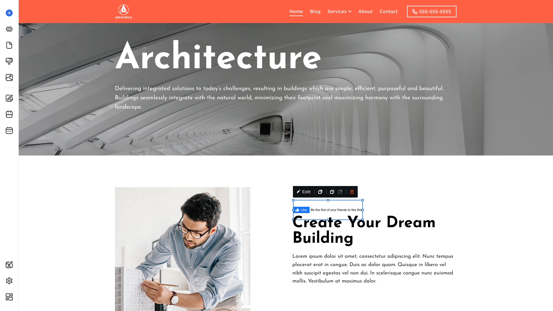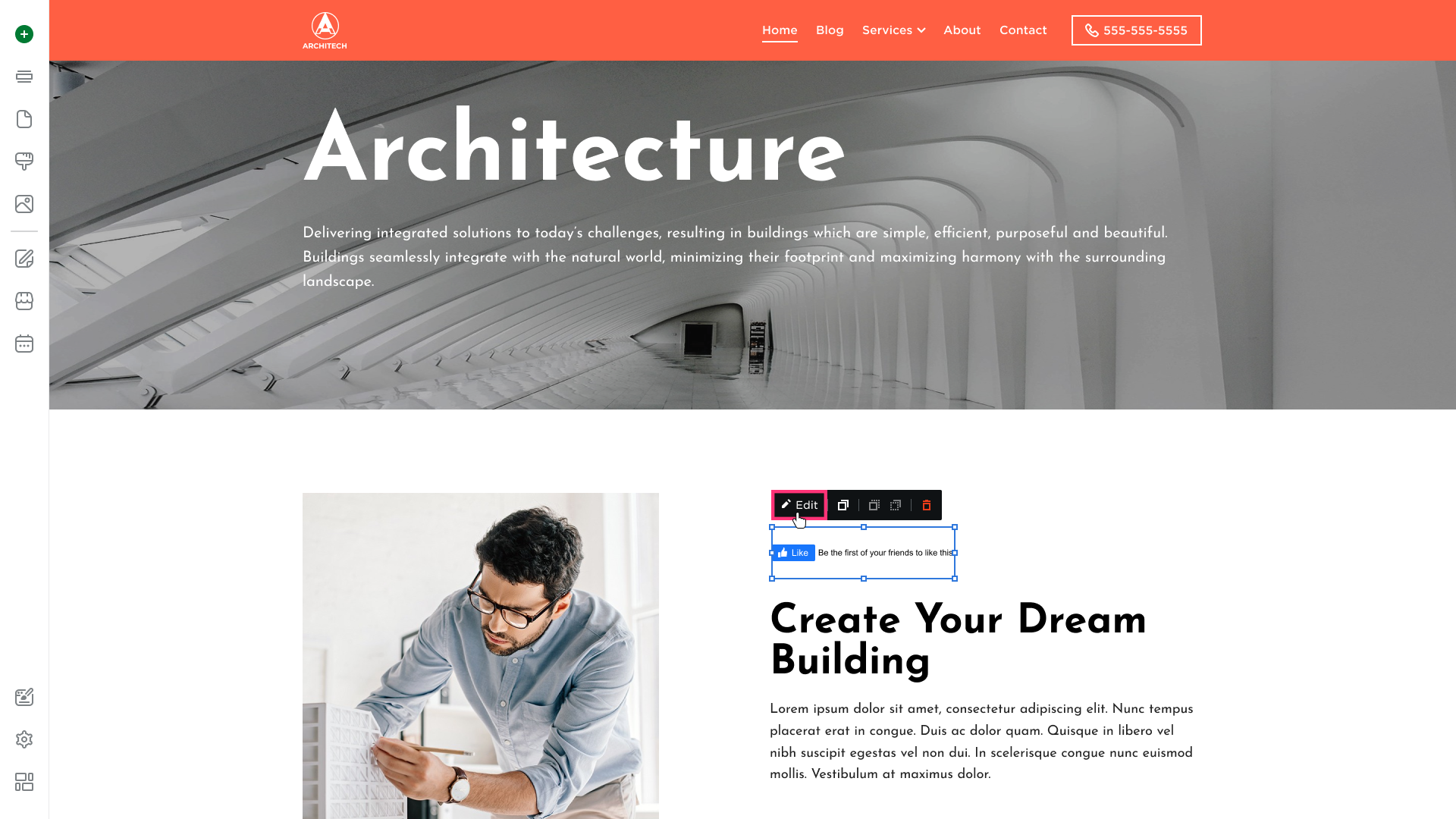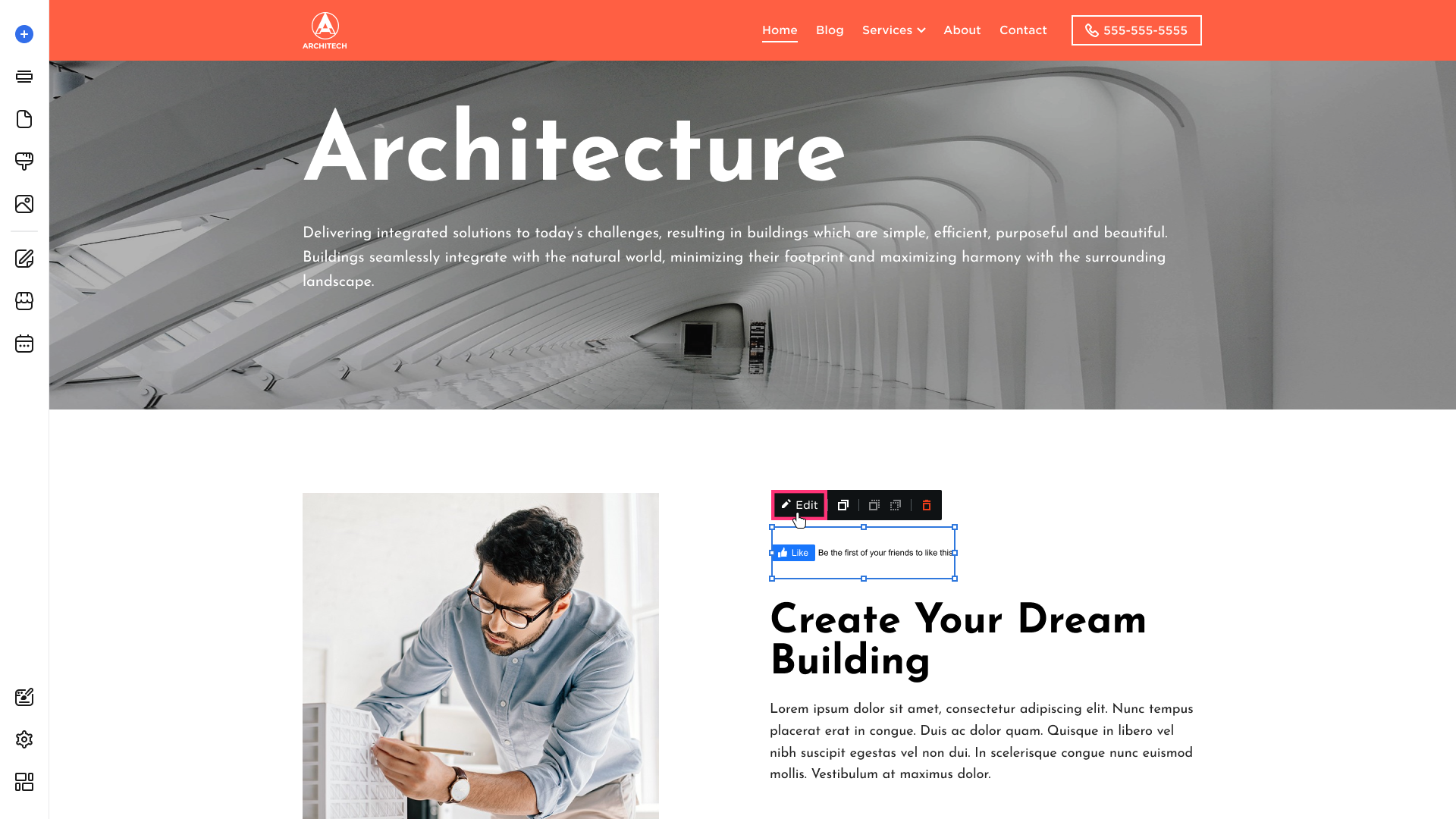 Click the Facebook Like to display the Edit button to be able to modify the element's Settings and Design: