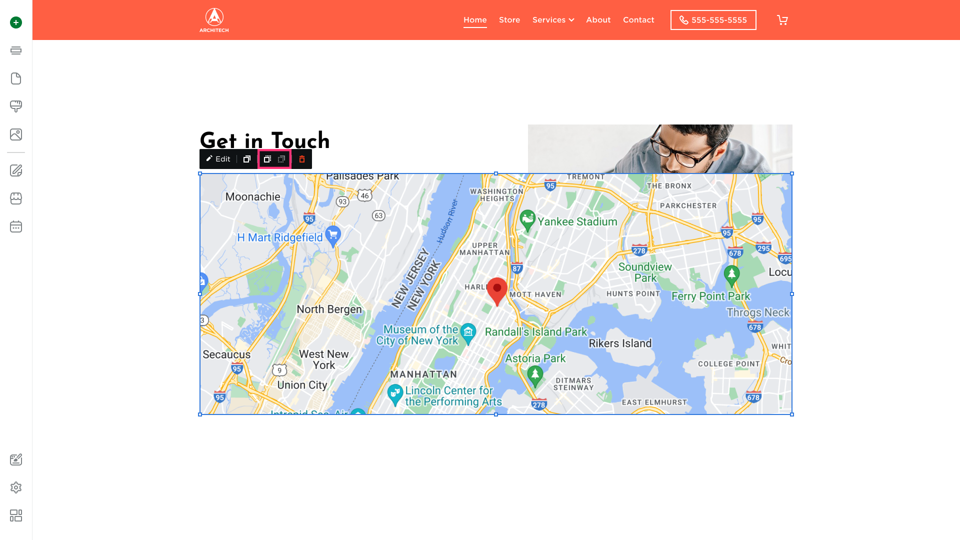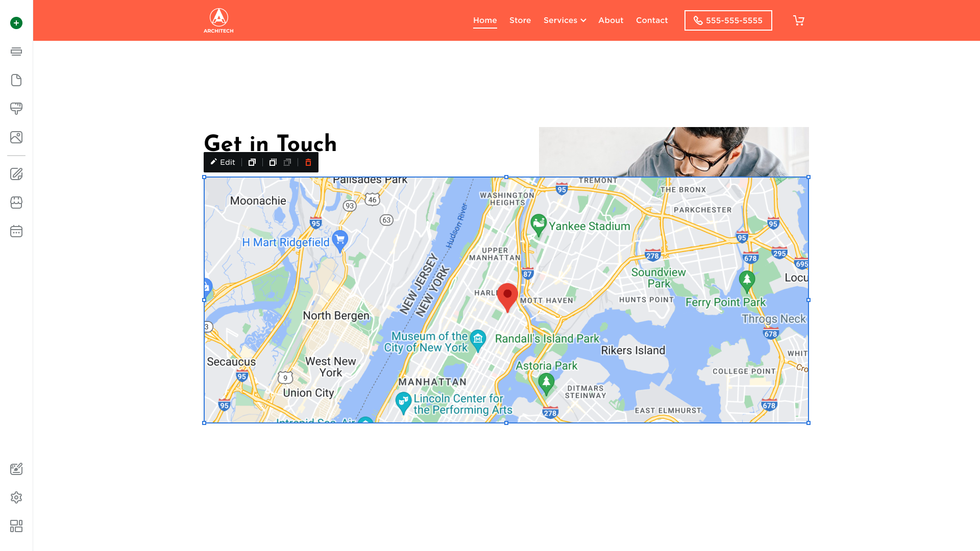 A Map element displays a geographic location on your website. It's useful for showcasing your business address, providing directions, or simply enhancing your content with visual context.