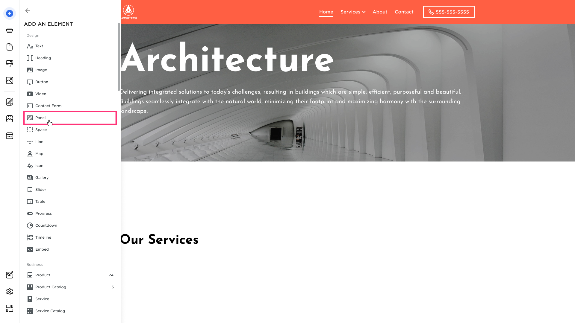 - Choose the Panel element from the modal that appears: