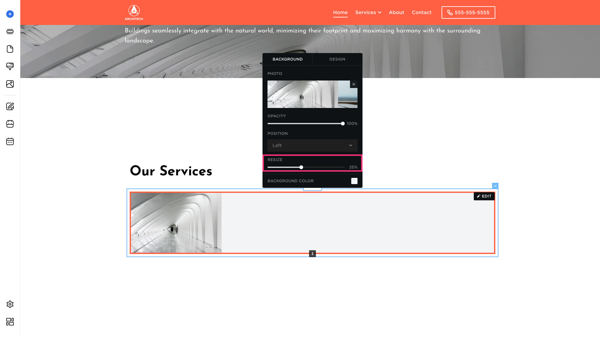 - Resize. You can Resize the image after changing its Position: