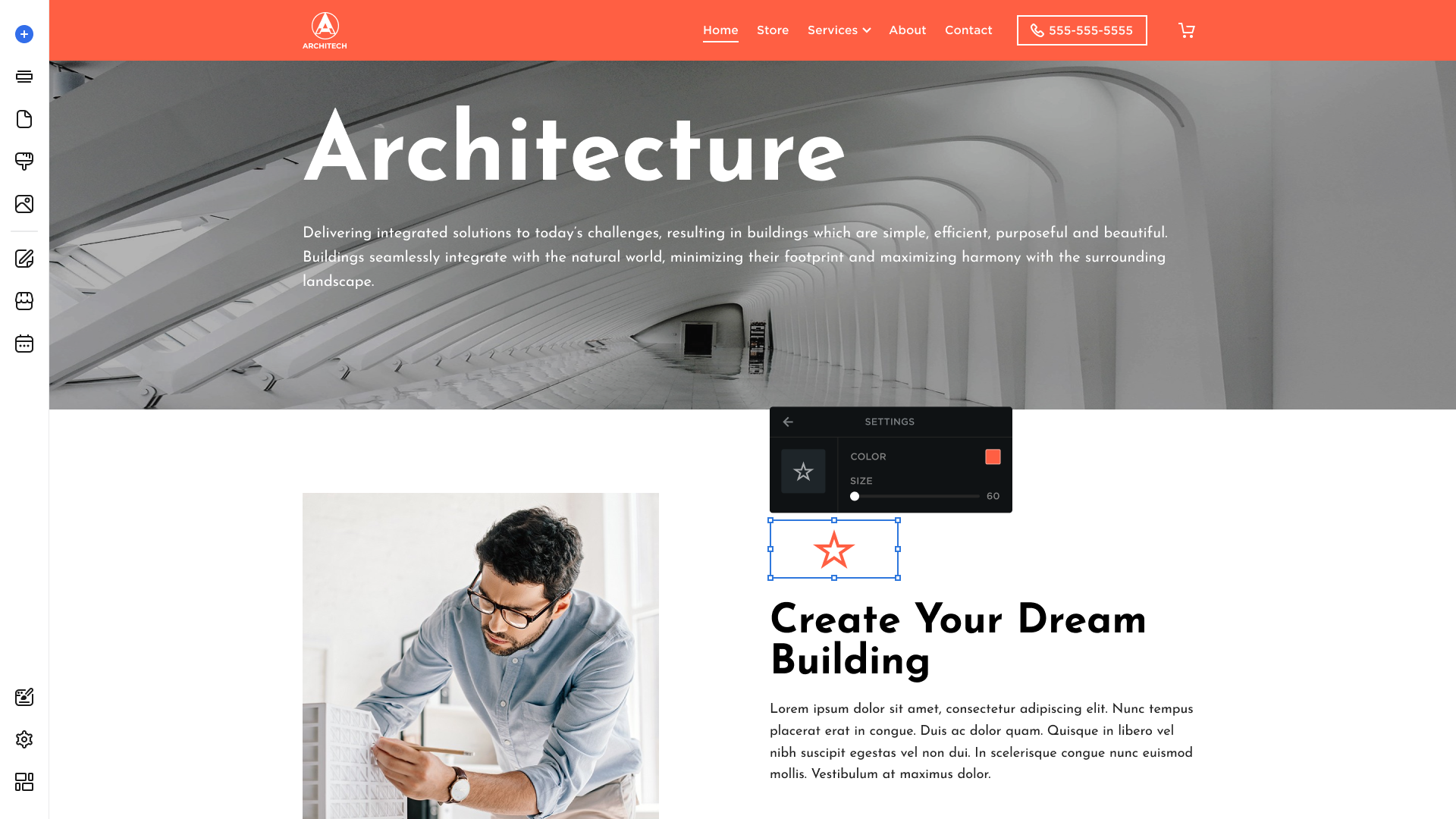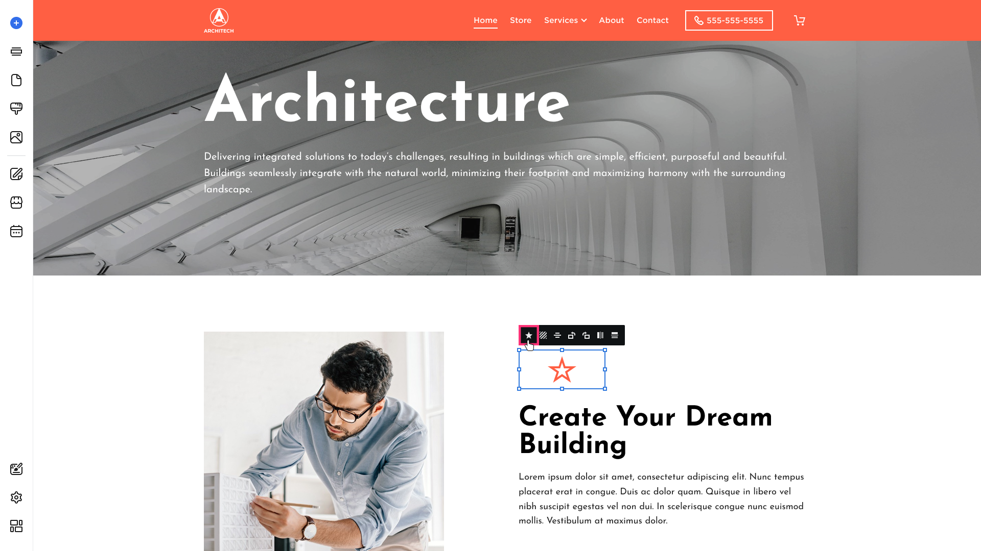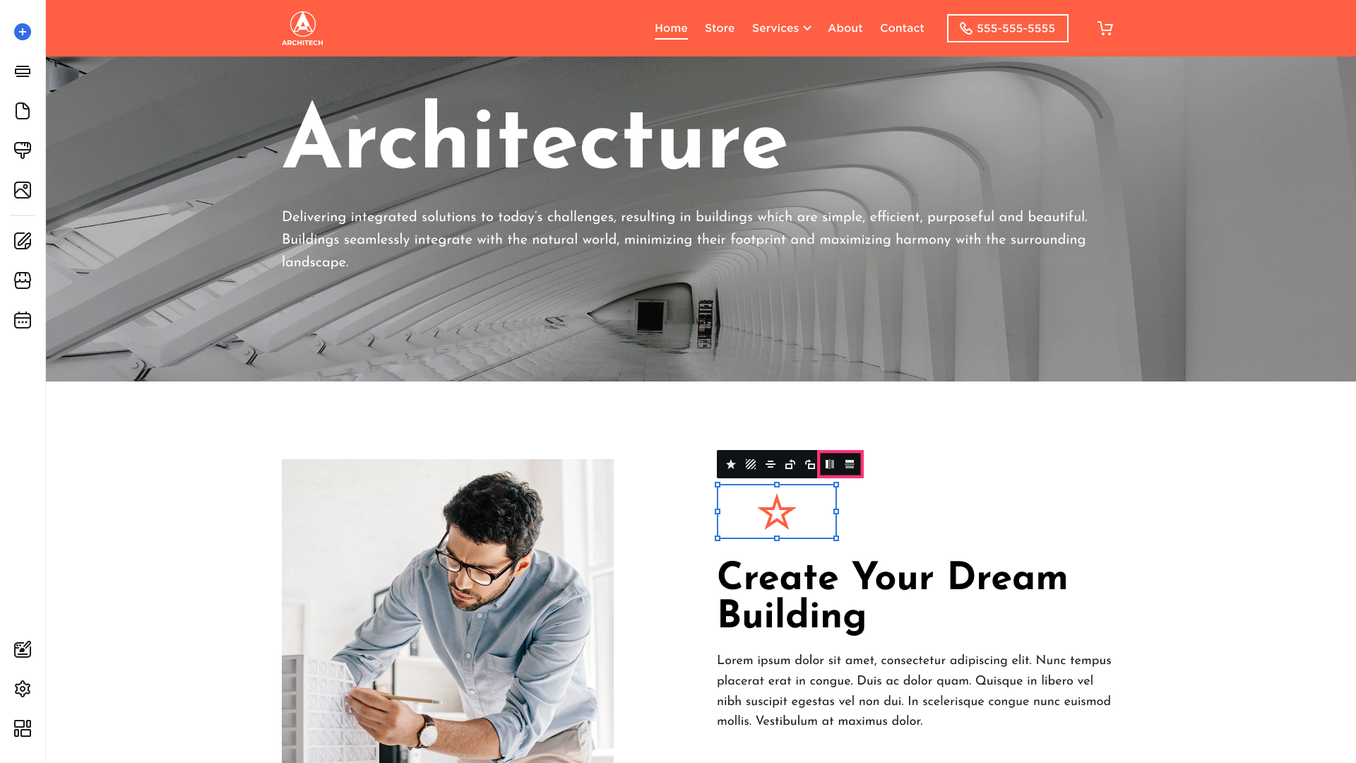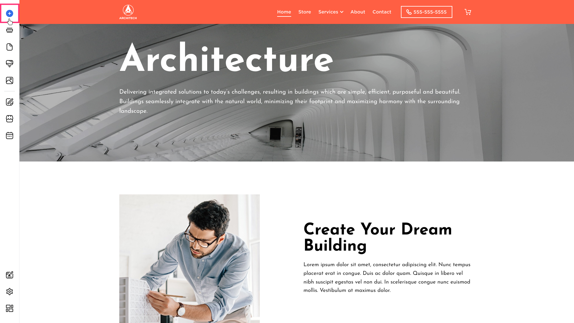 - Hover over the left sidebar of the Site Editor and click Build (+) button: