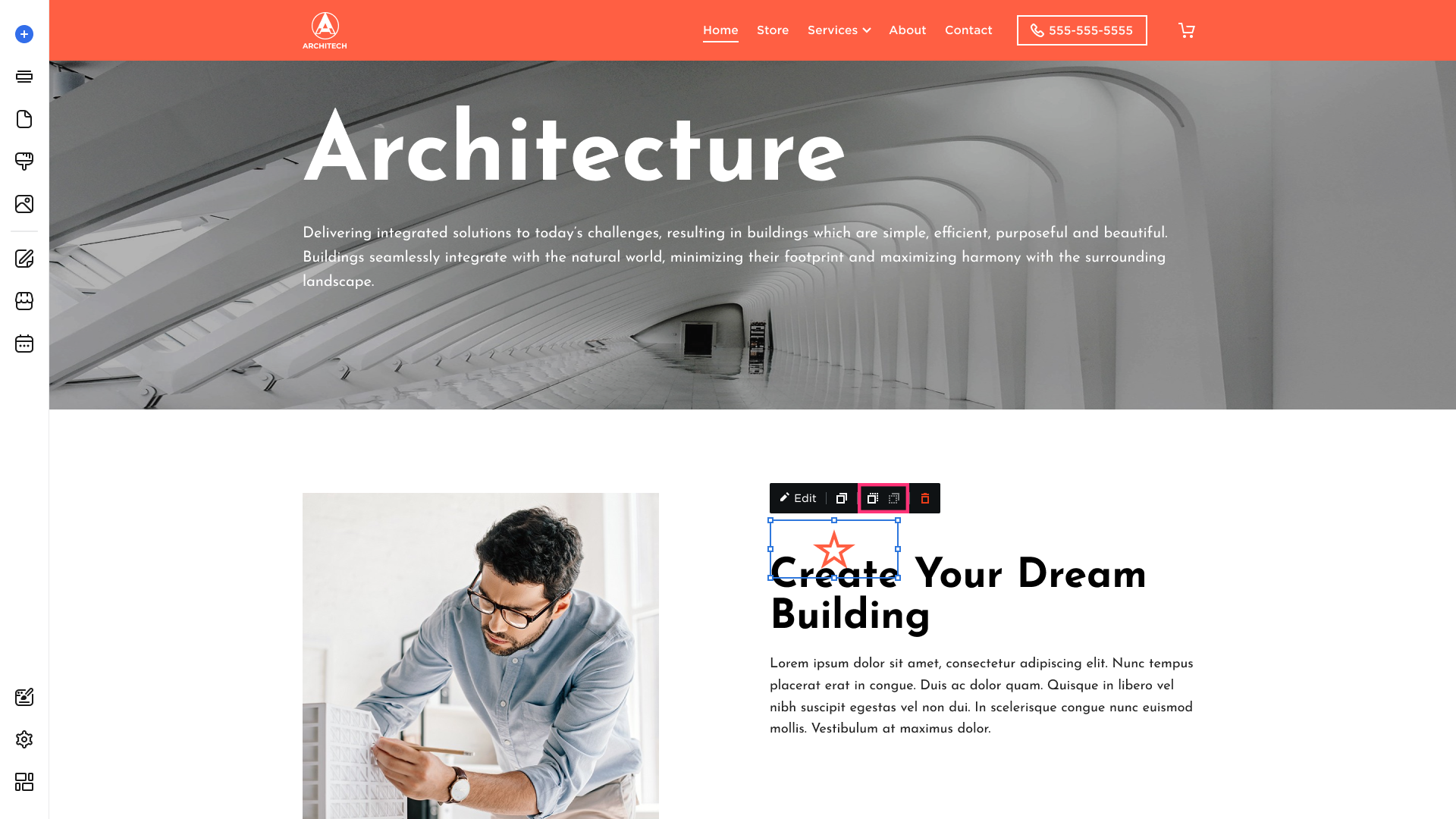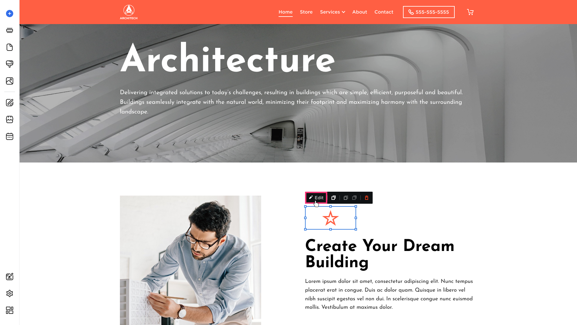 - Click on the element and choose the Edit button that appears in its toolbar: