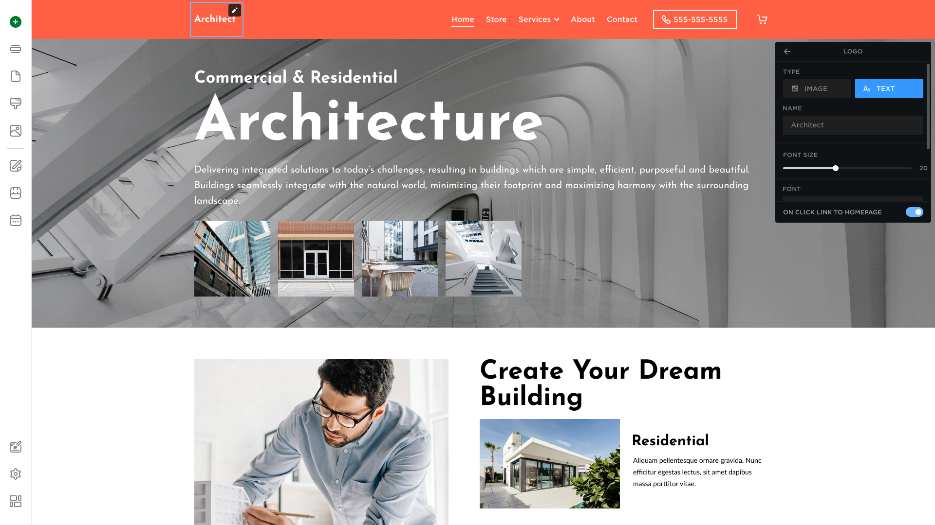 On the other hand, if you choose the Text type site logo, You can simply edit the name of the logo under the Name section and change freely the Font Size at the same time. Any changes you’ll do in Logo Editor will automatically take effect on the website page.
