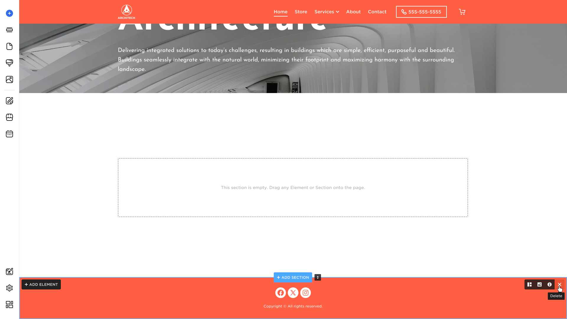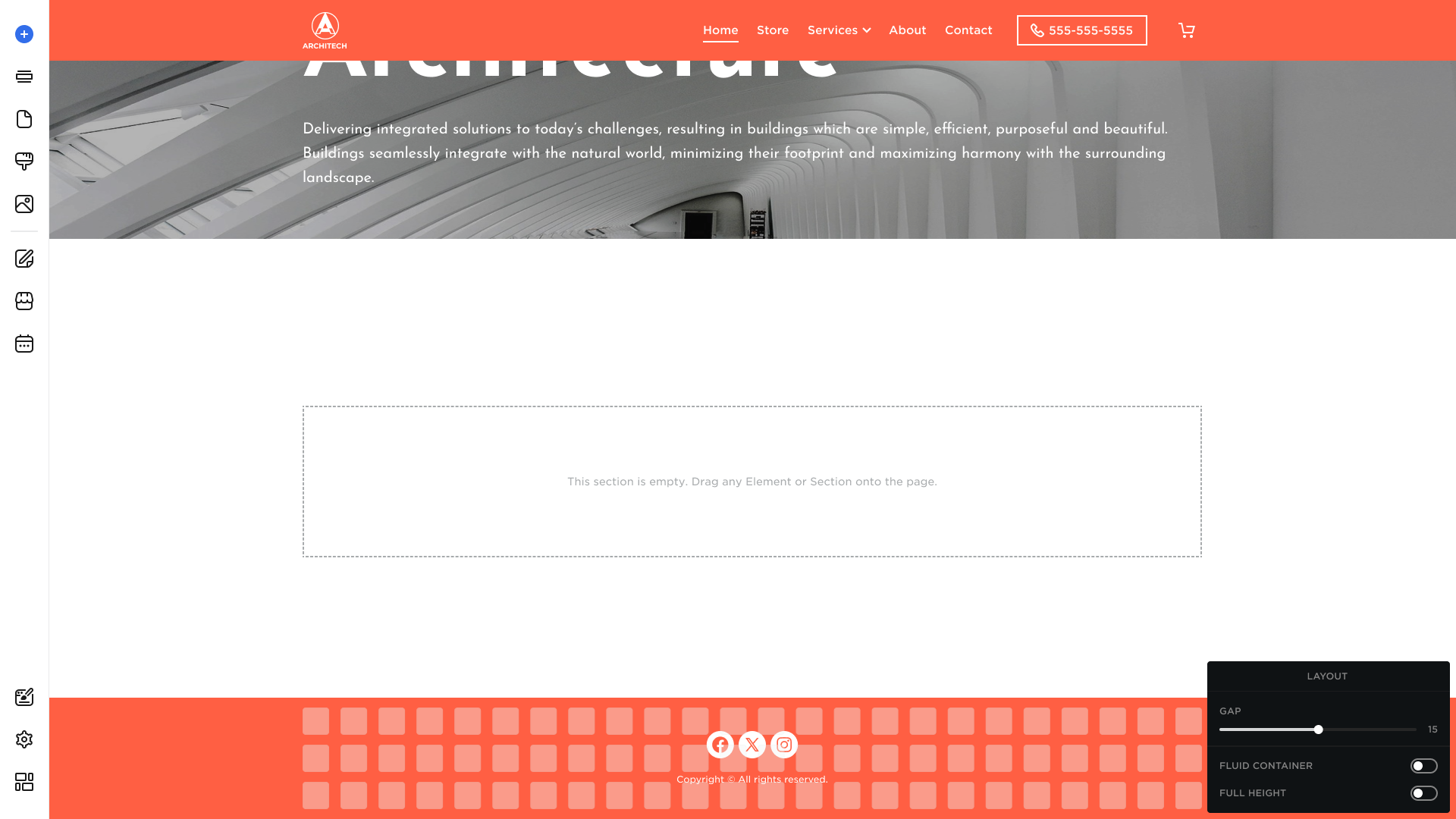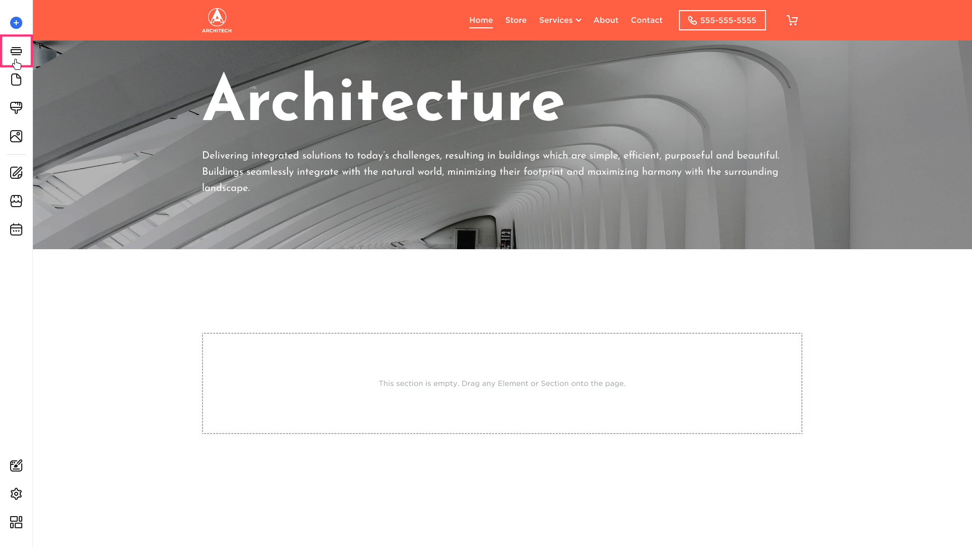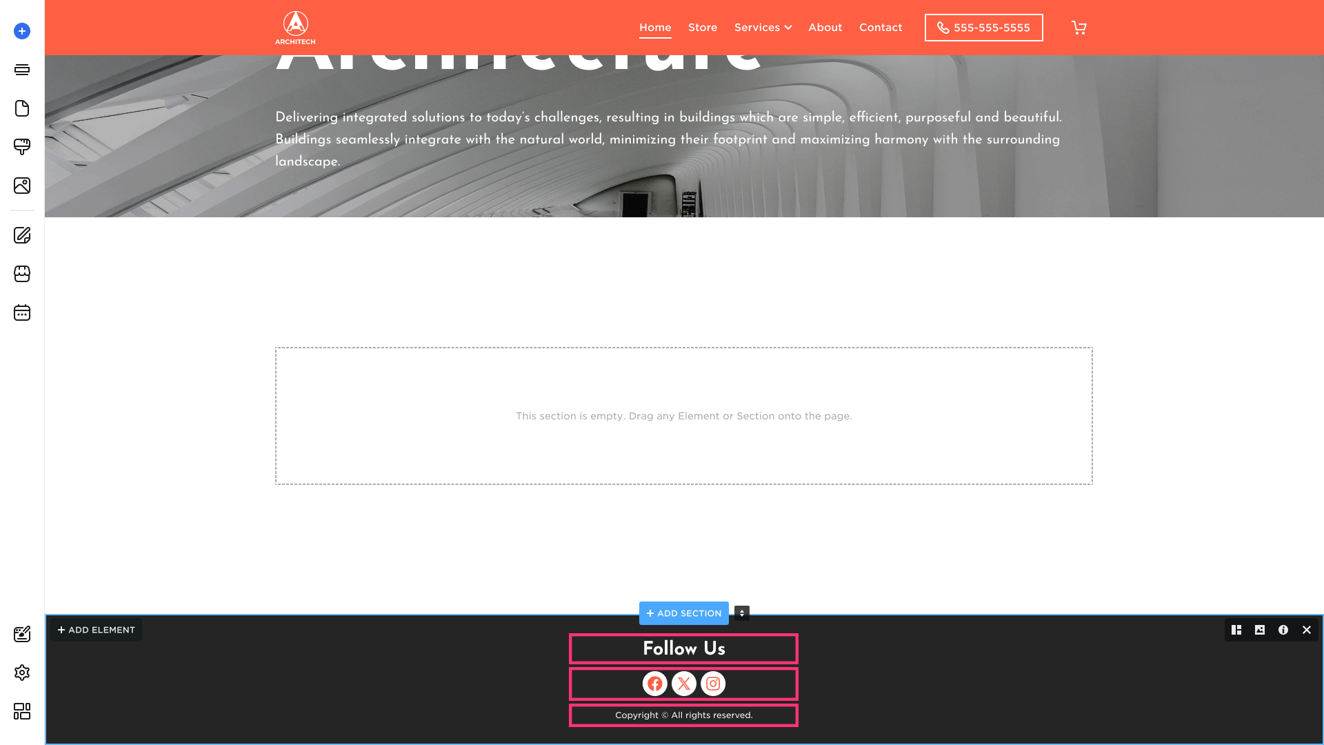 - The new section will immediately appear in the selected area. You can edit and add new elements to it to suit your needs.