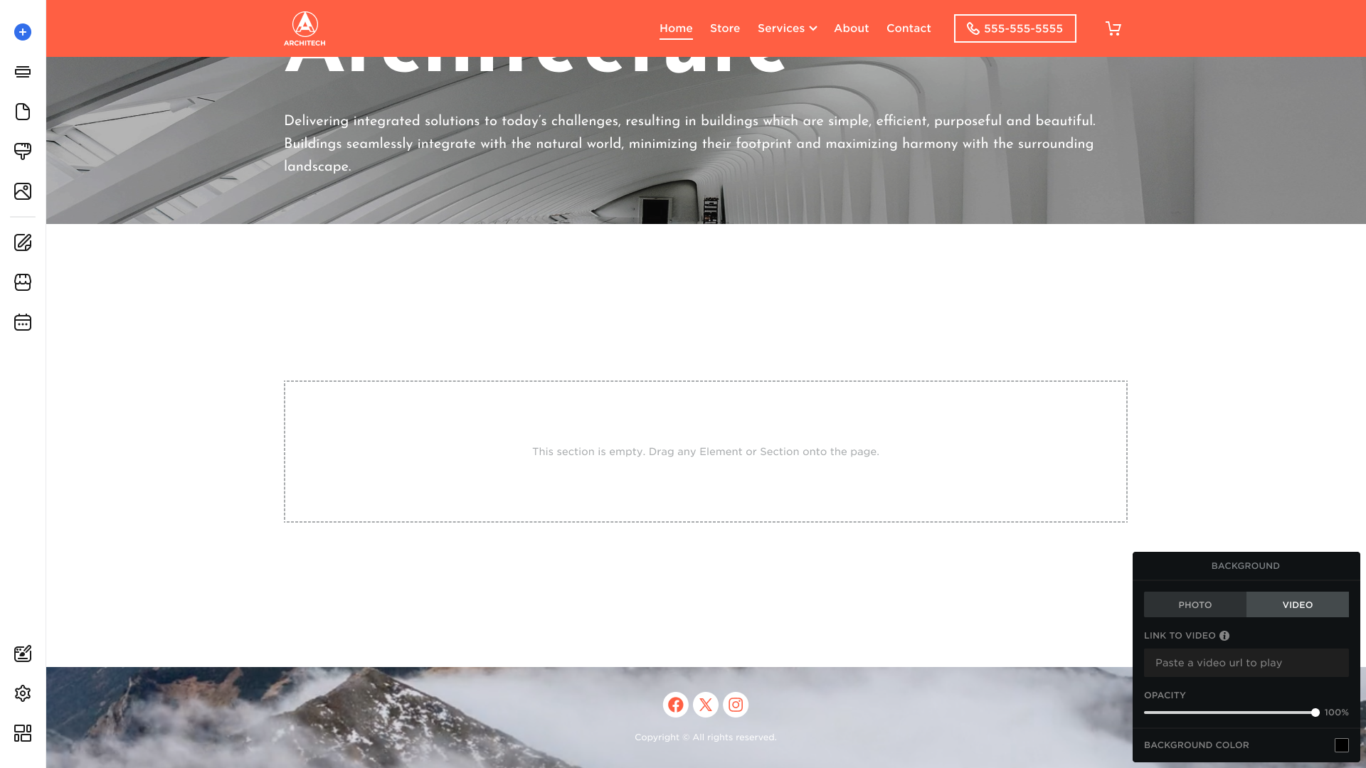 Hover over the Video tab to set a Background Video for your section, and be able to:
