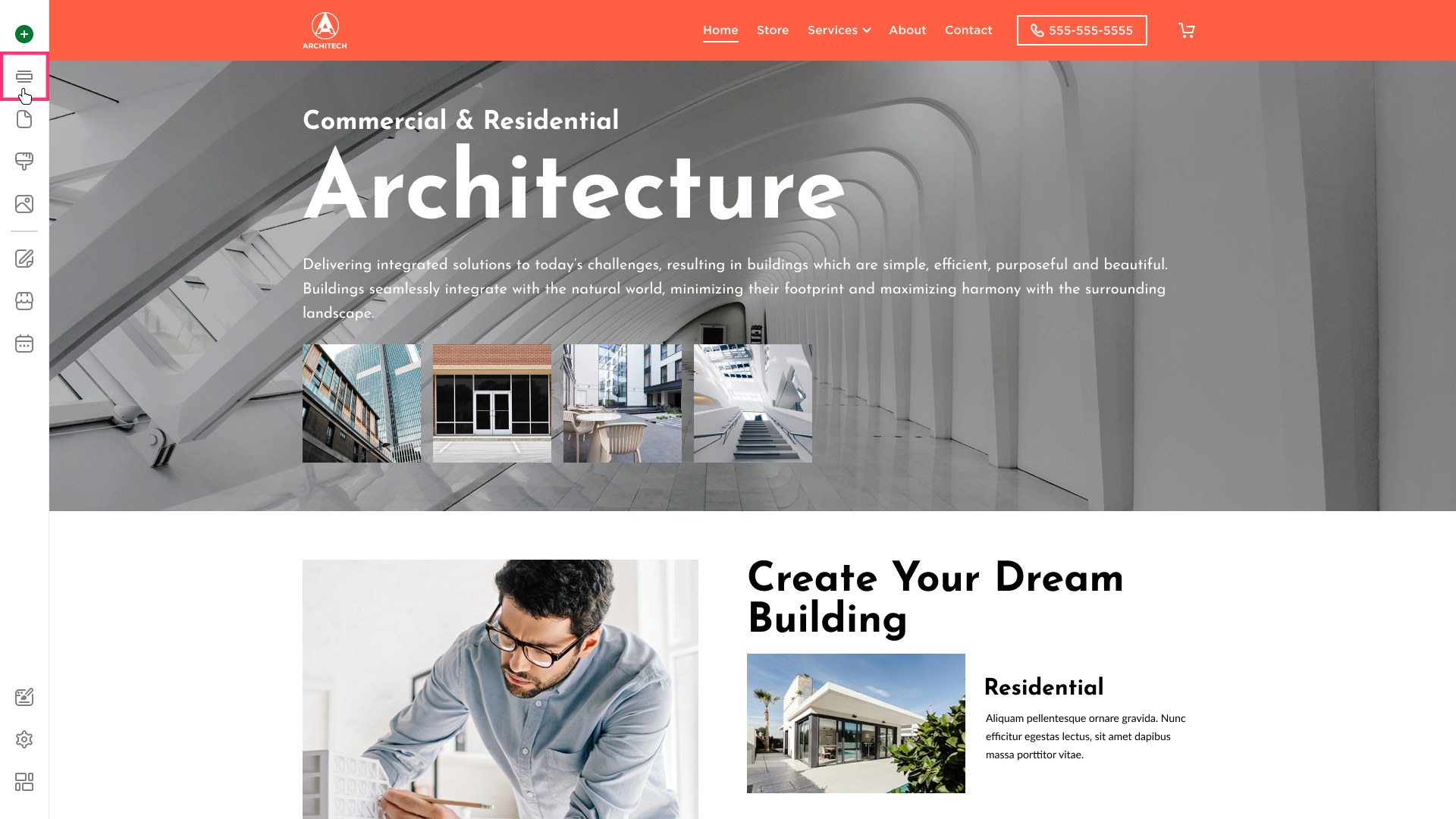 - Hover over the left sidebar of the Site Editor and click Sections: