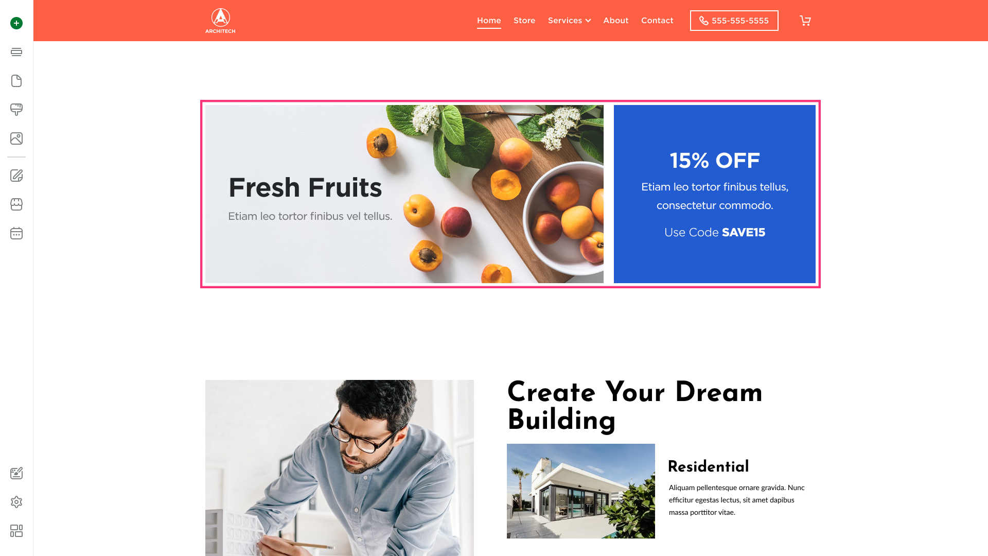You can also manage the Banner section's content, such as text, headings, images, and buttons. Rearrange, add, or delete elements according to your needs.