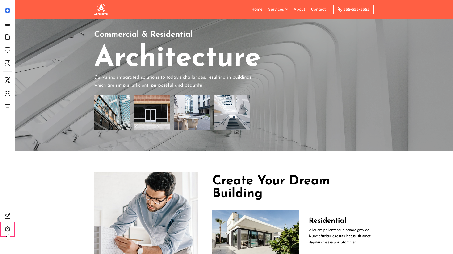 - Hover over the left sidebar of the Site Editor and select Settings: