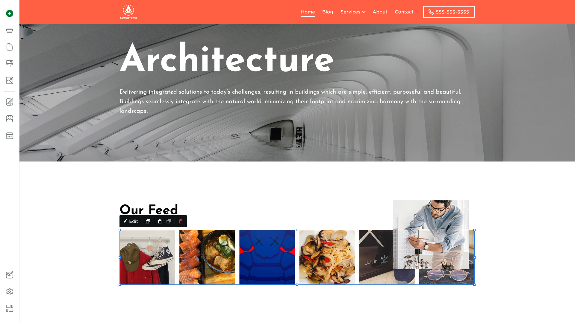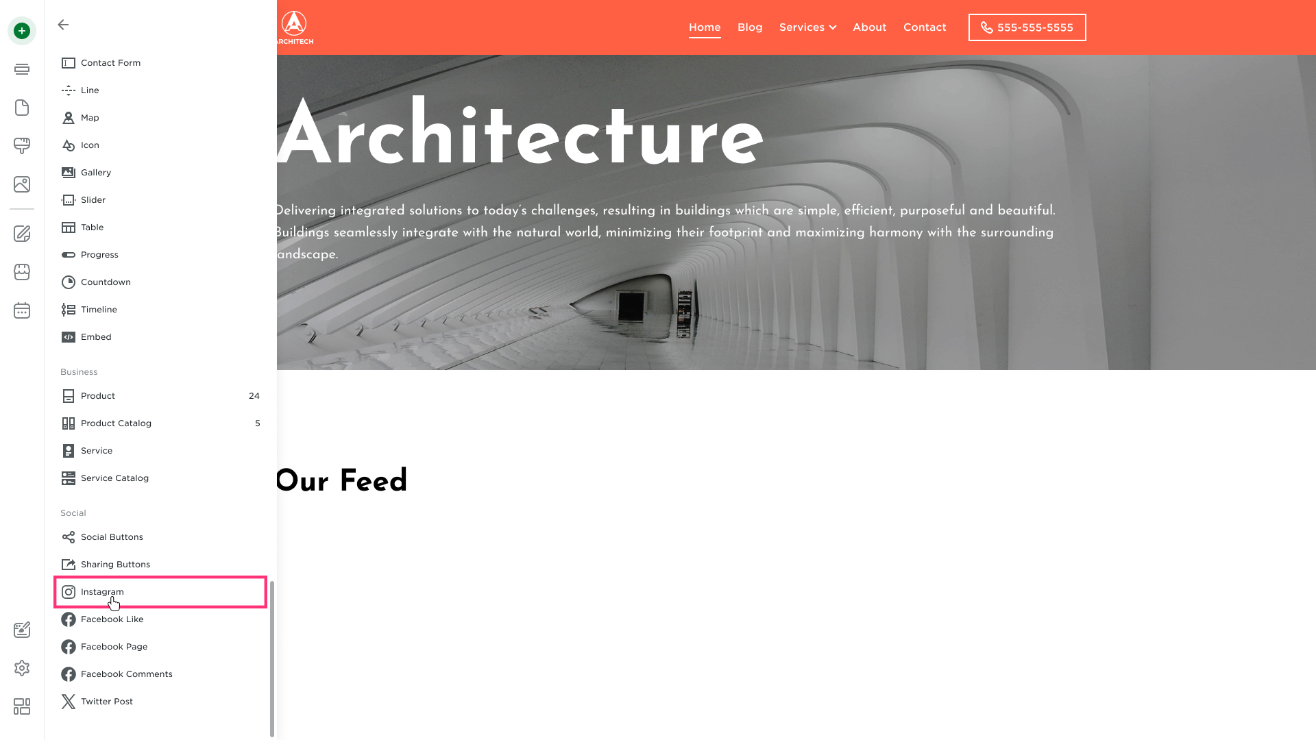 Click the Instagram element to display the Edit button in its top-right corner to be able to modify the Settings and Design: