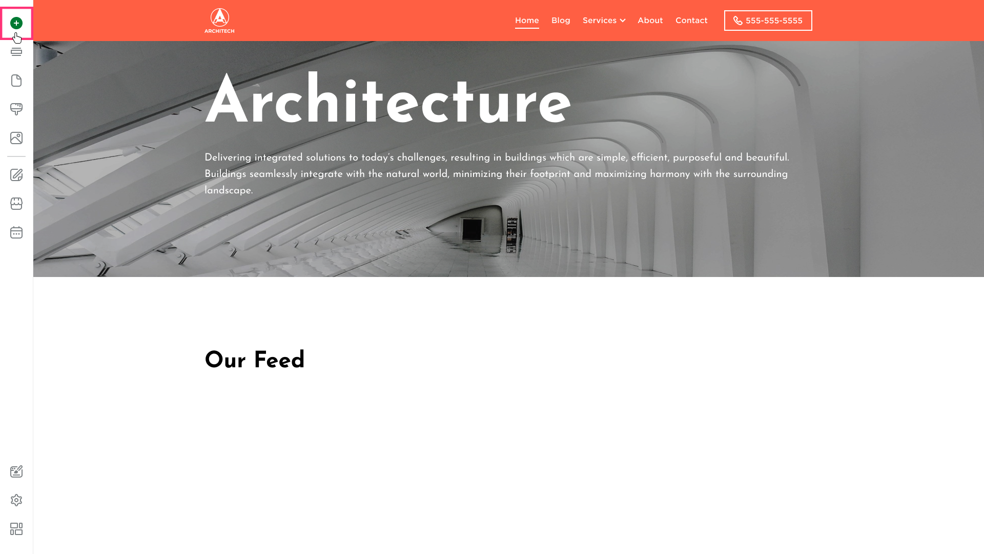 - Hover over the left sidebar of the Site Editor and click Build (+) button: