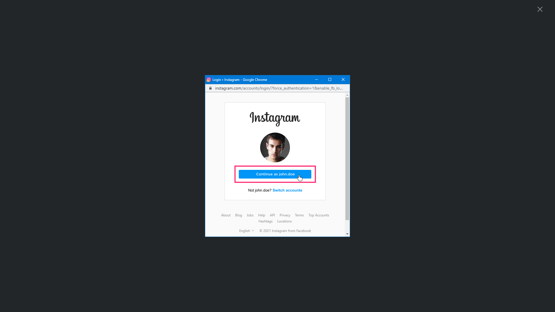 - Select the Instagram account you're currently logged into. If needed, click Switch Accounts to select a different account: