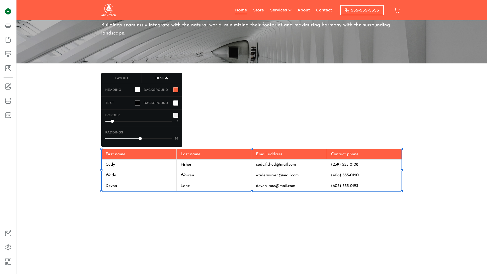 - Padding. Drag to increase or decrease padding for the Table rows.