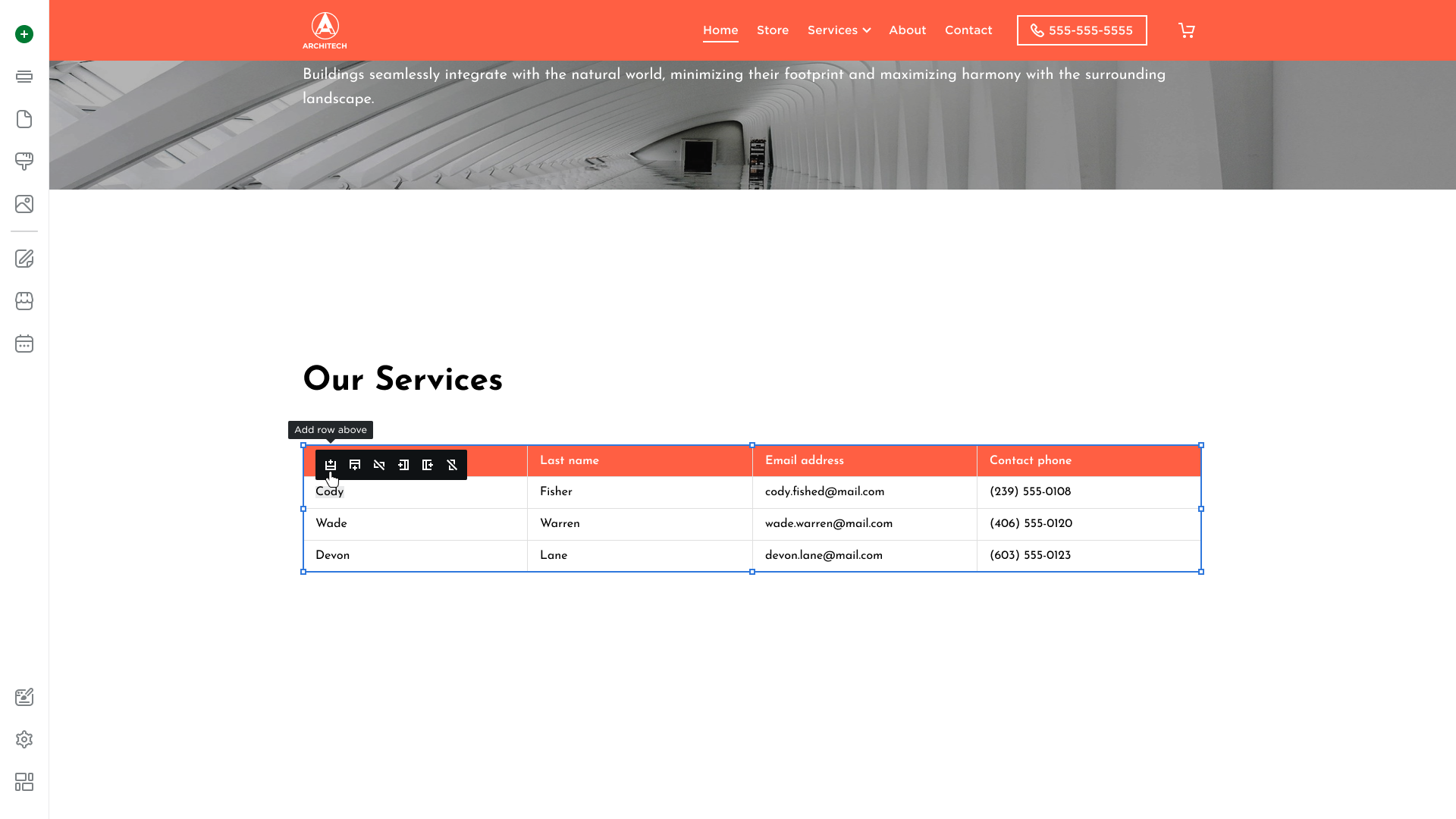 - To delete the table, click on the element and choose the Remove button [Bin] that appears in its toolbar: